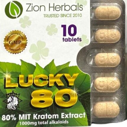 Zion Herbals Lucky 80 Kratom Extract Tablets offer a unique formulation made from an 80% mitragynine extract, focusing solely on the mitragynine alkaloid while minimizing other sub-alkaloids. The tablets provide a highly energetic and alert experience due to their high purity, achieved by removing almost all of the 7-Hydroxymitragynine alkaloid. Each serving contains 75mg of mitragynine, with 10 servings per pack, ensuring a potent experience.